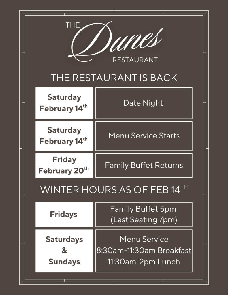 The Dunes Restaurant is the only family style restaurant in Westsyde!